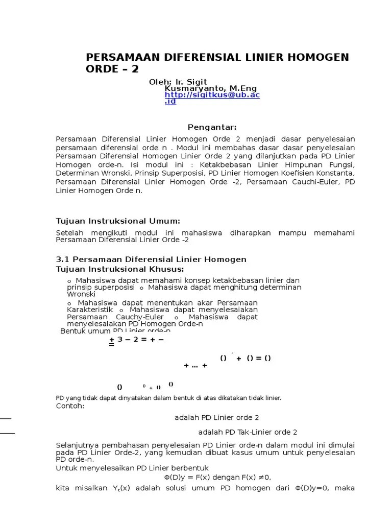 Maka dipertemuan kali ini contohsoal.co.id akan menerangkan secara lengkap materi tentang persamaan diferensial beserta pengertian, biasa, .